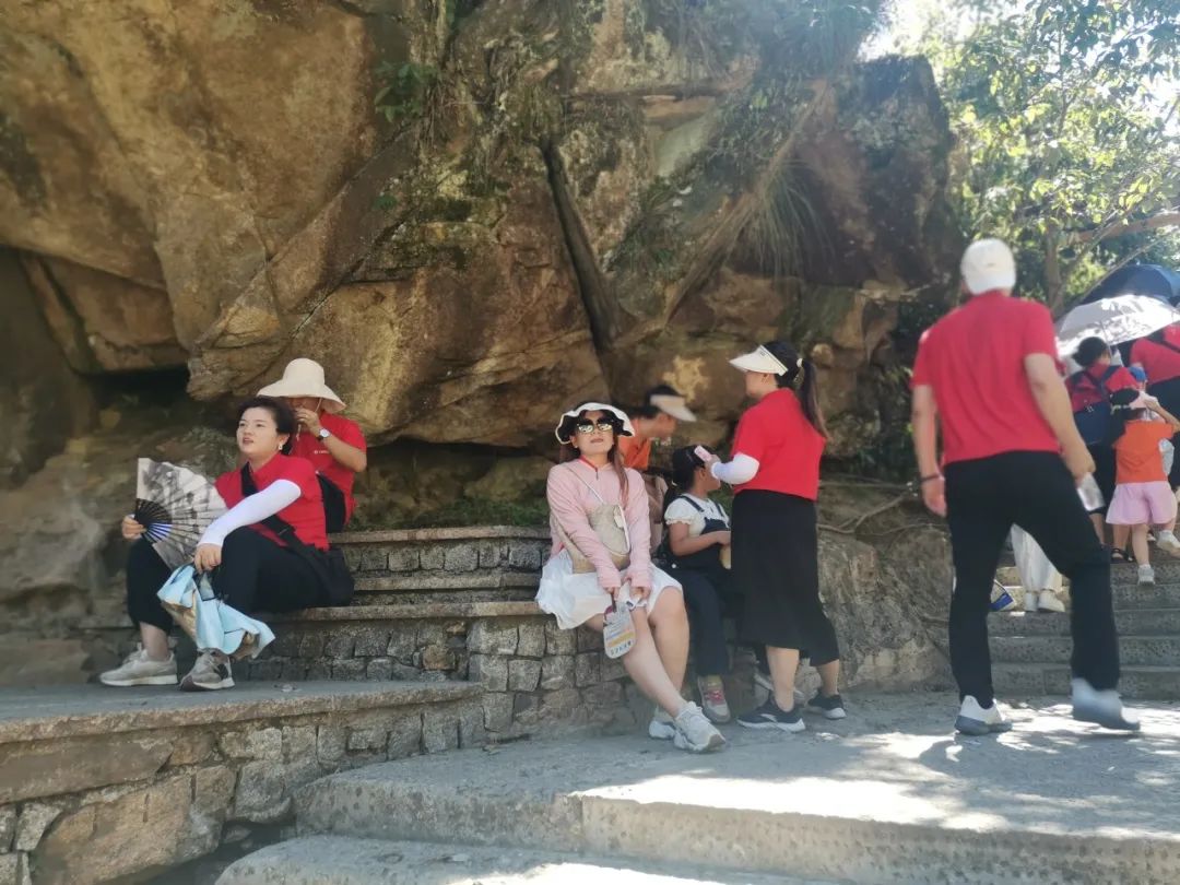 天气虽热,揽收于心底的美景却是独一无二的,连绵起伏的群山在云海的拥抱下若隐若现,加上阳光的点缀,仿佛置身仙境。