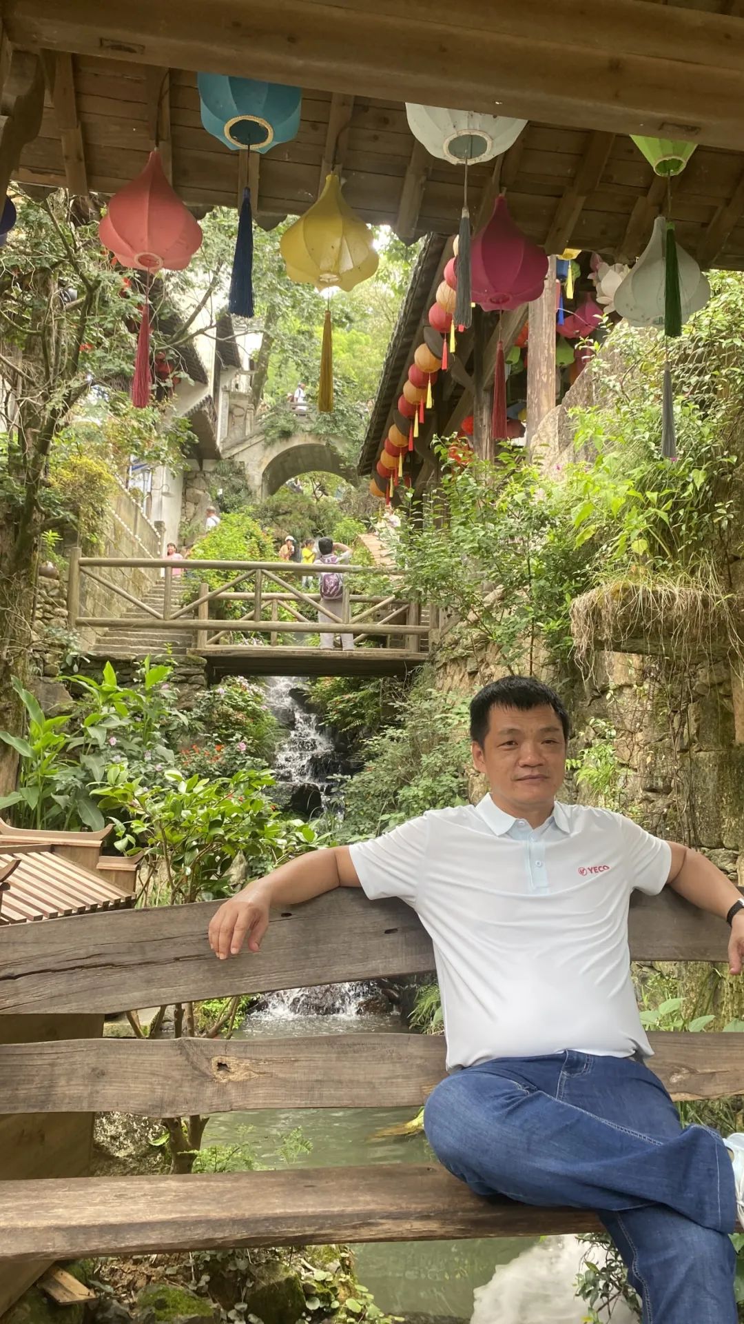 站在廊桥上,一边欣赏典型的江西风雨廊桥,一边观看独特的叠水景观——三叠水:峡谷里的水自上流下,遇上了高高低低、就产生了形式不同、水量不同、水声各异的奇特景观;